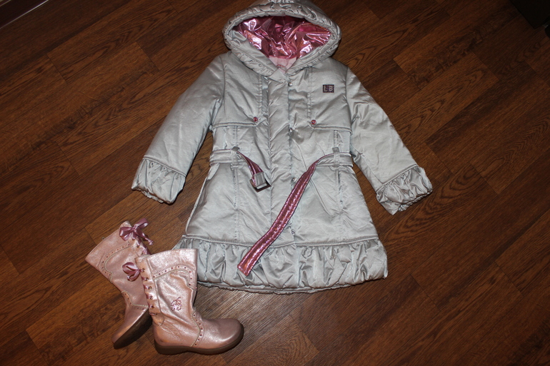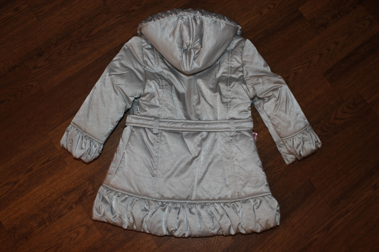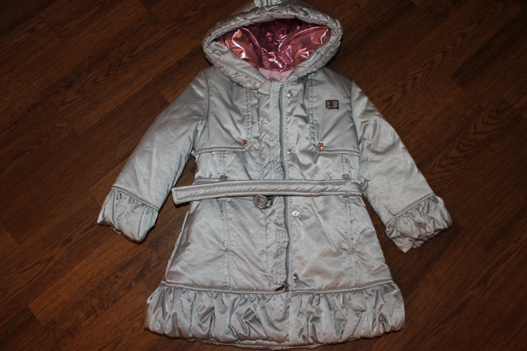 красивое пальто Laura Biagiotti 3 г, надето ровно 1 раз, цвет серебристый, розовый подклад, капюшон внутри и поясок ярко-розового перламутрового цвета. Ральто прям девчачье девчачье))) не зима, на синтепоне, холодная весна/осень, размер 3г/98 см, идет в размер.