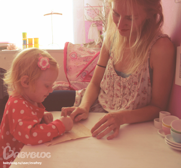 Я не хочу бить себя в грудь и заниматься бахвальством, но могу поделиться только тем, что с Милой мы делаем ВСЕ ВМЕСТЕ!!! Печем пироги, варим супы, моем полы, стираем, ходим за покупками, и даже в тренажерный зал вместе ходим! Вот так! И знаете, что я замечаю? Что я для нее самый лучший друг. Она не шарахается других детей и очень приветлива с ними, но интереснее всего ей играть со мной. Потому что я научила ее играть. Не бегать и бессмысленно визжать, а именно играть. Мы ставим с ней домашние спектакли, а она потом повторяет это и делает сама, она знает весь алфавит, знает все цвета, считает до 10, зает геометрические фигуры, прекрасно разбирается в понятиях "большой-маленький", "светлый-темный" и пр. собирает пазл и лепит из пластилина. Он не обделена ни вниманием ни информацией.