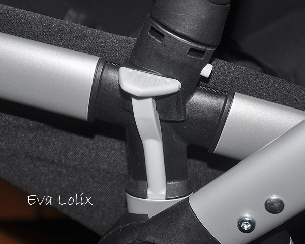 Регулировка наклона сиденья и его перестановка по ходу или против движения происходит с помощью двух кнопочек по бокам коляски, которые расположены на раме под бампером. На них нужно нажать и опустить, поднять сиденье, либо вытащить и переставить в нужное положение.