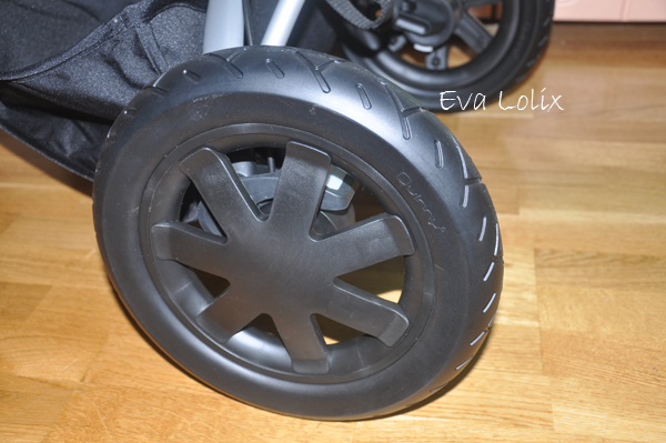 Задние колеса диаметром 30 см, ширина около 6 см.