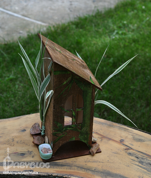 РукоделиеПробило меня на творчество, сидя на даче... Альпийская горка, камешки и водопадик, который находятся на участке, навеяли такую темку (любимая тема)))) для чайного домика.