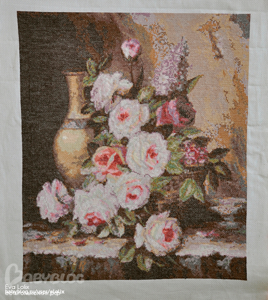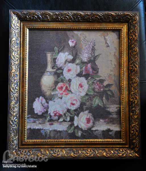 Вышила пару лет назад и убрала, как и многие другие вышивки. Теперь достаю их из "закромов родины"). Хочу к этой вышивке рамку купить, вот думаю... какого плана. А потом в комнате повесить, потому что уж очень она в тему к обоям)))