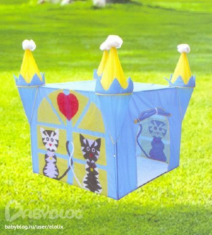 Привезли нам сегодня этот домик, дочке он понравился, она его выбрала, его и заказали. Я хотела другую. К домику взяла пачку шариков из ста штук. Мааало, надо было пачки три брать, потом, наверное, докуплю еще. Сама палатка каркасная, собирается легко. В реале она более синяя.