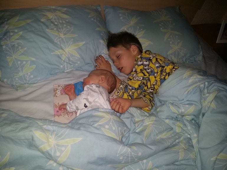 Первый месяц прошёл в суете: беготня с документами, сад, отправили старшего в первый класс. Потихоньку наладили режим. Днем Андрюша спит не очень. Где-то два длинных сна и несколько коротких "подремываний" по 20 минут. У меня под бочком с грудью во рту спит лучше.