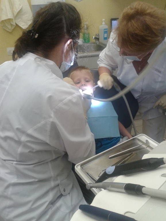 Как не берегли мы Игорехины зубики, появился таки кариес на двух нижних пятерках ( Пошли мы лечить. По-моему, больше всех боялась я. Ребь спокойно открыл рот и дал залечить разом два зуба. Заделали ему дырки цветными пломбами. Такой он умничка, даже не пикнул, за что получил шарик в подарок. Причем собственноручно надутый с помощью их стоматологической штуки, которая дует.