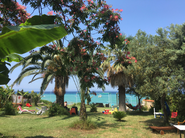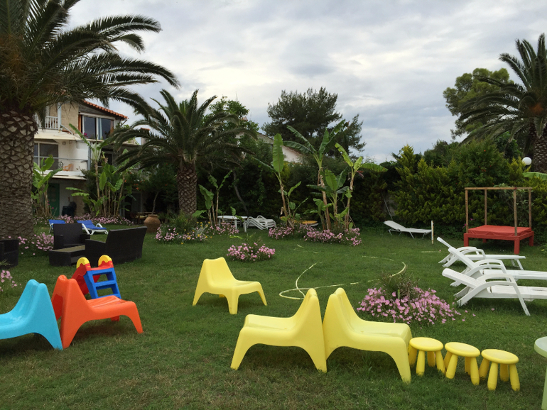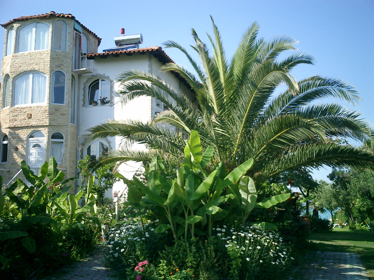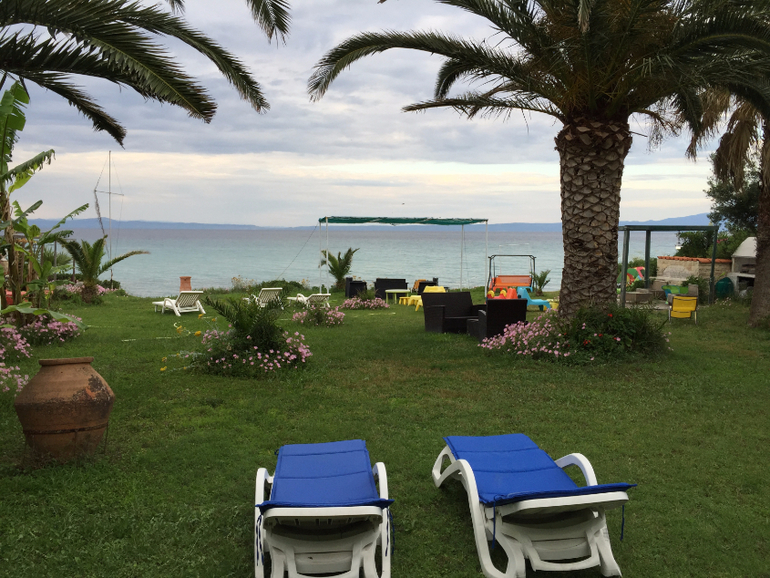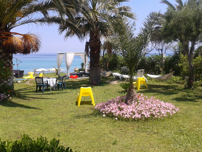 Вилла Смарделла находится на первой береговой линии, поэтому у всех апартаментов есть доступ к большому зеленому саду в 4000 кв.м. с тропическими деревьями и цветами, который плавно переходит в один из красивейших песчаных пляжей Халкидики длиной в несколько километров.