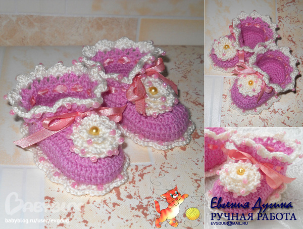 Вот такие пинеточки связались на выписку маленькой принцессы из роддома)