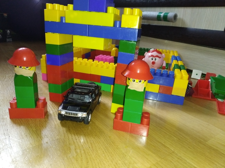 КарантинВчерашний конструктор высох и мы с детьми играли в карантин "Нюша на самоизоляции". Причем охрана это врачи в масках.