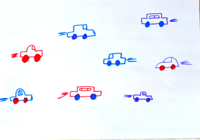 Эту Макс обожает - найти, например, синюю машинку с красными колёсами.