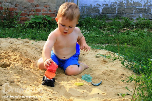 Сейчас песочница у нас – это большая куча песка у стены сарая. По мере сил и возможности, в планах ее облагородить. Но пока так.