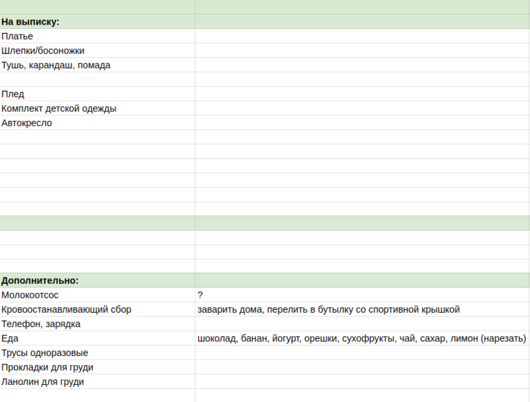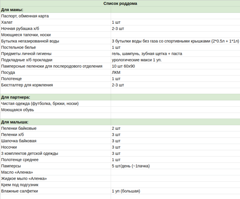 Взяла официальные требования роддома + добавила что считаю нужным (основывалась на рекомендациях здесь + немного статей из сети)