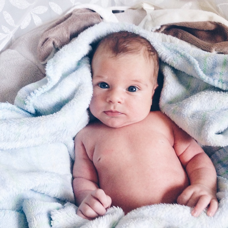 Держит не плохо голову уже. Научился переворачиваться с живота на спину. Я прям была свидетелем, как у человека в голове искорка зажглась. Торчал вот так и голову набок завалил, ножкой оттолкнулся и уже на спине лежит. И такое понимание процесса в этот момент пришло, это лицо надо было видеть! После этого раз 10 еще просился, чтоб потянула за руку и перевернула на живот и сразу же повторял фокус, оттачивал новый скил.