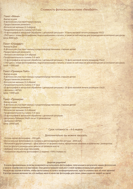 -я вам, в качестве благодарности, дарю скидку при подписании модельного релиза для разрешения фотографу публиковать снимки в портфолио, в интернете на рабочих страницах фотографа, участвовать в фотоконкурсах и в фотовыставках.