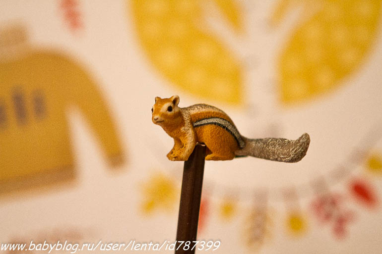 Надеваем на карандаш какую-нибудь интересность (фигурный ластик для карандаша, картинку, пластилиновую фигурку). Я, прошу прощения, даже конфету Ferrero Rosheк в обертке протыкала, несколько дней служила верой и правдой, блестящая, интересная!