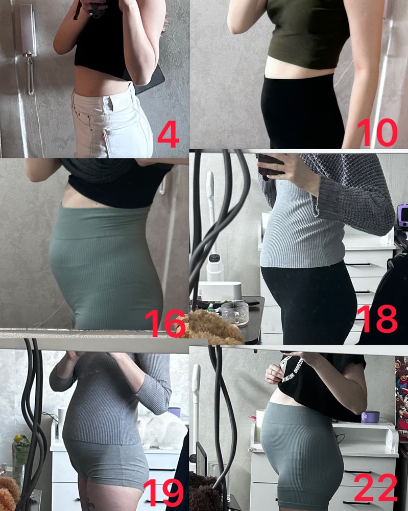 Сделала коллаж, как рос живот по неделям, здорово наблюдать вот так, как бы со стороны, когда каждый день видишь в зеркале, это не так заметно.