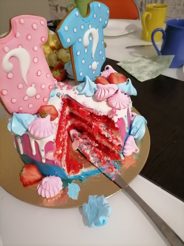 На 18 неделе на УЗИ написали пол, конвертик ждал дня х месяц 😄т.к у мужа др и хотелось тортик разрезать именно в этот день!
