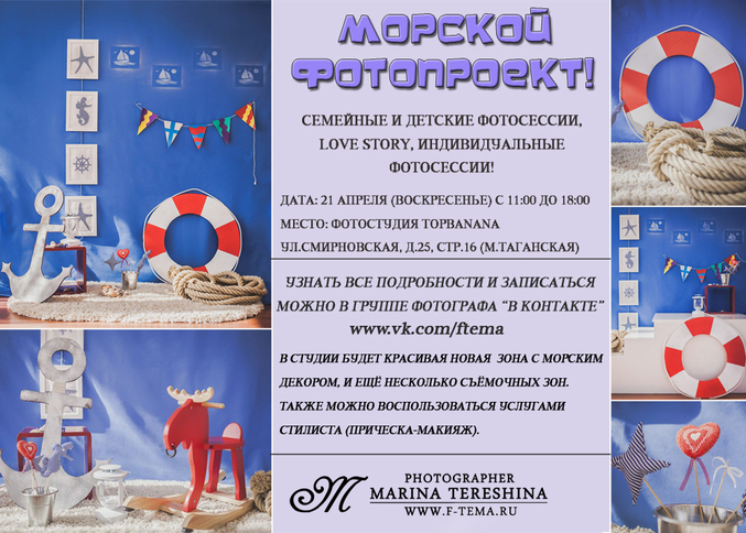Внимание! ОСТАЛОСЬ ВСЕГО ОДНО МЕСТО, ВРЕМЯ с 14 до 15! Морской фотопроект 21 апреля, студия TopBanana, Москва, метро Таганская!