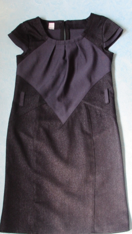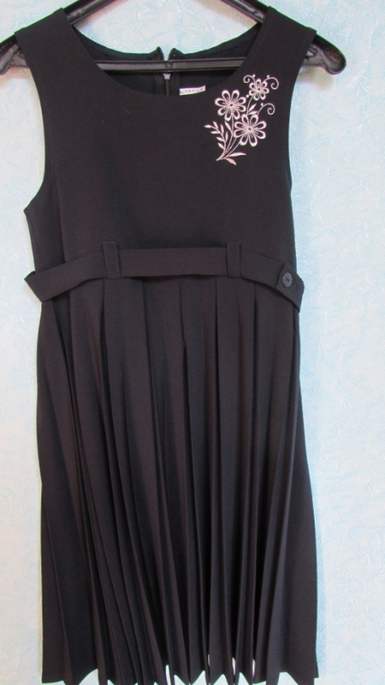 Сарафан новый рост указан 140,без бирки,темно-синий качественный не мнется,отлично держит складку, брали в школу,но ввели другой тип формы не пригодился длина 76 см,ОГ 68 по талии поясок можно утягивать,на спинке молния