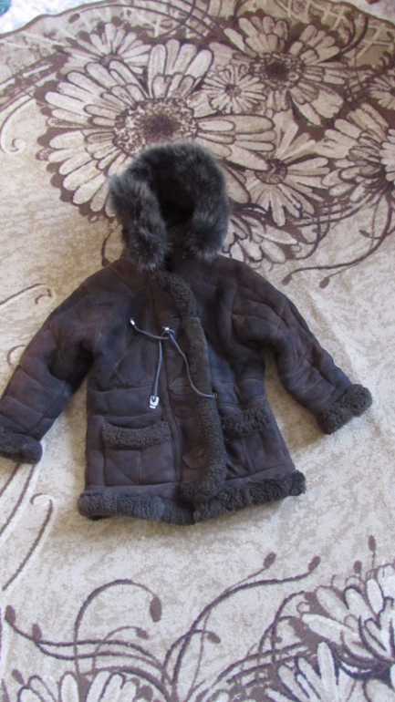 Дубленочка натуральный мех-овчина не продуваемая.Можно и на мальчика.На 3-4 годика мы одели в 2 г 7 мес.Шапка в подарок ,замеры по запросу,почта.