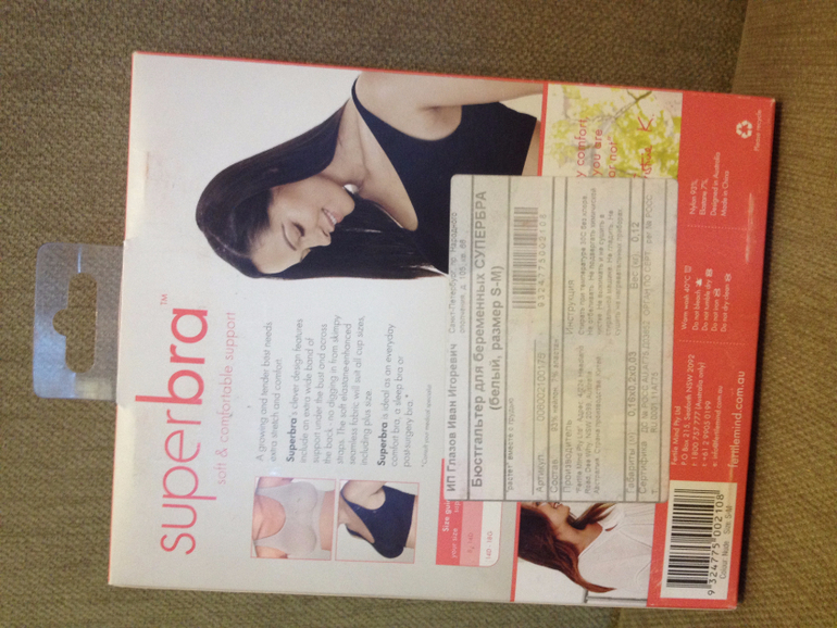 4) Новый бюстгалтер для беременных SuperBra тм fertilemind (произ-во Австралия, оригинал!): бесшовный бюстгальтер, который "подстраивается" под меняющиеся в процессе материнства размер и форму груди. Подробнее можно почитать здесь у производителя