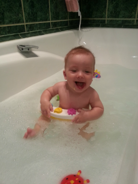 Красотулька! Мы пока не сидим, так что во время купания испытываем на прочность мои руки и спину, подобный стульчик уже присматриваю.