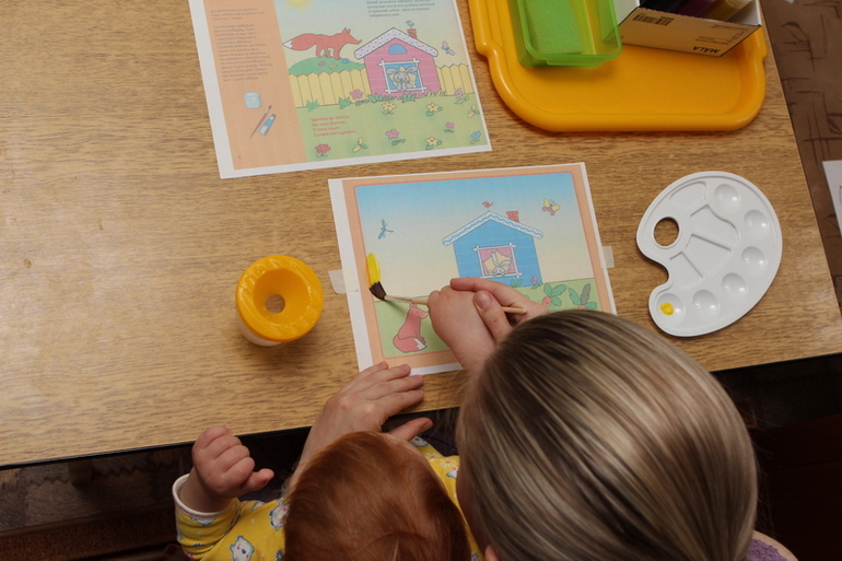 Ну и конечно же рисование! С каждым днём краски приобретают у нас всё большую популярность. Рисовали зайчику следы и попутно их размазывали.