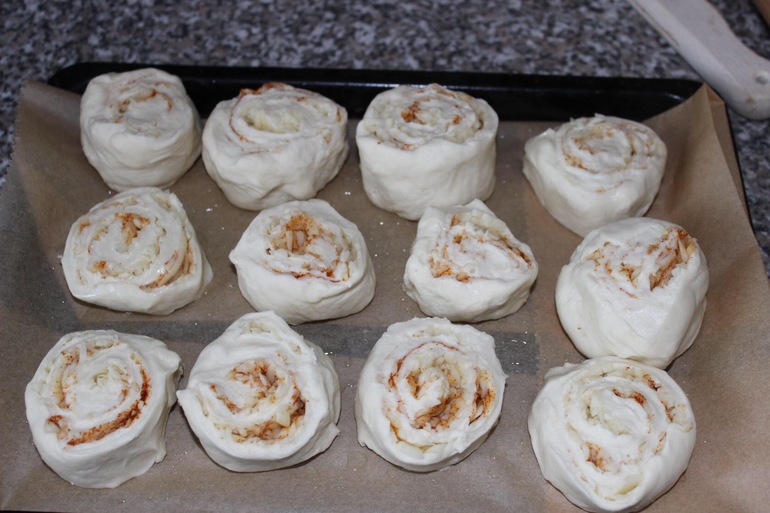 И нарезаем не большие рулетики, чем тоньше, тем быстрее испекутся