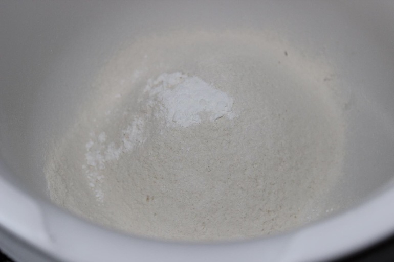 Сначала смешиваем все сухие ингредиенты, муку просеиваем,