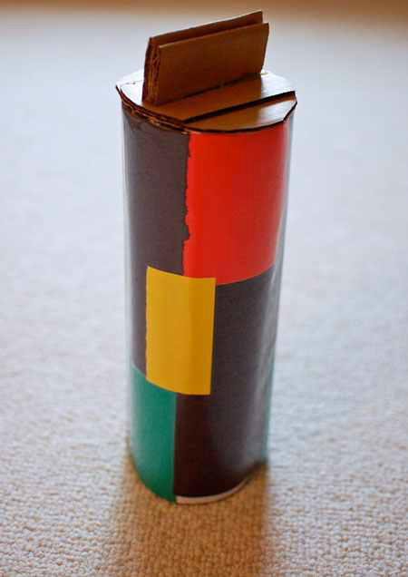 (мое примечание: можно взять рулон от бумажных полотенец, желтый цвет делать такого же размера как красный зеленый)