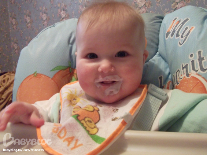 кушаем мы творог с черникой, яблоко, банан, цветную капусту, брокколи, картошку, пьем яблочный и грушевый сок, чай с ромашкой и с фенхелем. Самое любимое блюдо это пюре с картошки )))