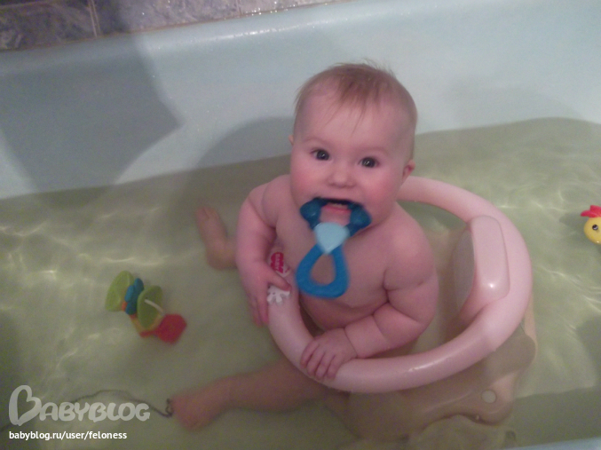 купается Алиса в стульчике где-то пол часа, потом еще минут пятнадцать на ручках у мамы плавает))