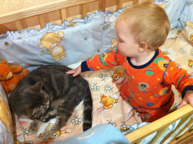28.10 укачивал котенка, нашел у меня попу и шлепает.