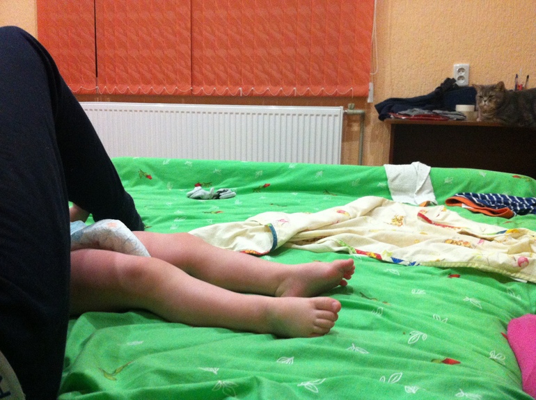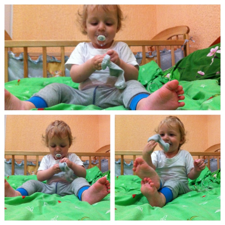 Растете, молодцы! С полторашкой вас ;)Сколько у вас дома градусов, смотрю, вы босиком бегаете по плитке, не холодно?)