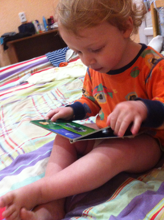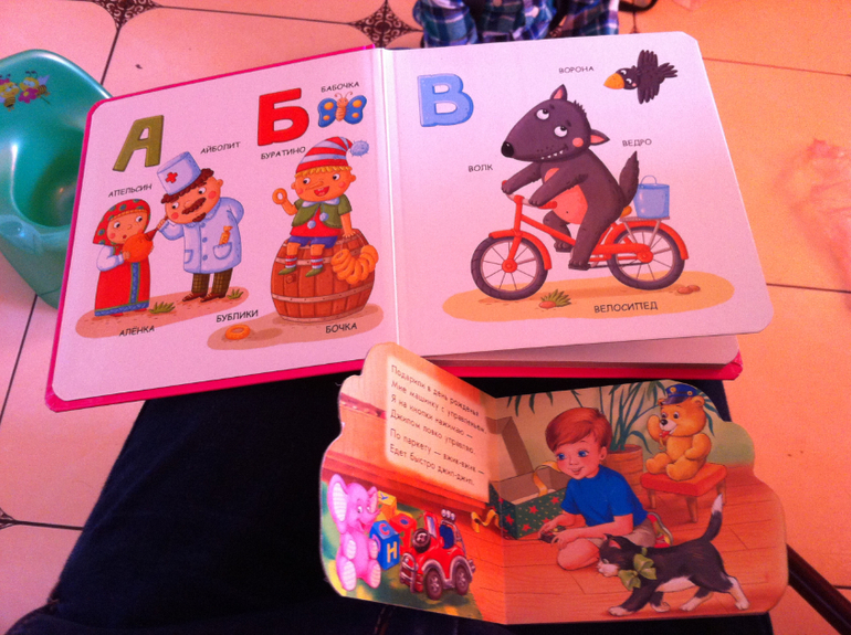 Книги и машины - его лучшие друзья) Купила обалденную азбуку и буквально за неделю он уже выучил почти всех персонажей. Дети поразительно быстро умнеют.