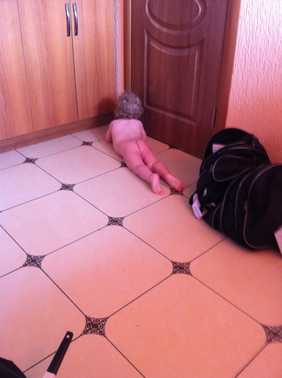 так выглядит детёныш моржа))) к слову дома прохладно и кафельный пол холодный))) правда я такое не поощряю лежание, только без носков ходим.