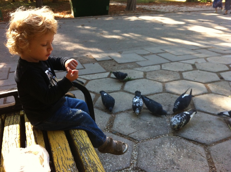 покормили гулей и ворону, посмотрели на лошадок и детский поезд, набегались)
