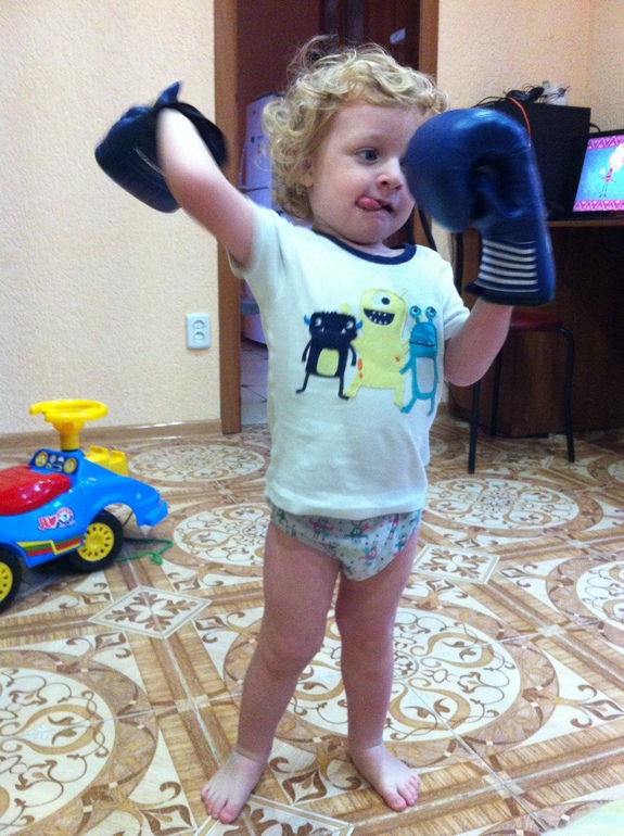 Нет, сынок, мы с папой не давим на тебя....но на поиграй еще с боксерскими перчатками))