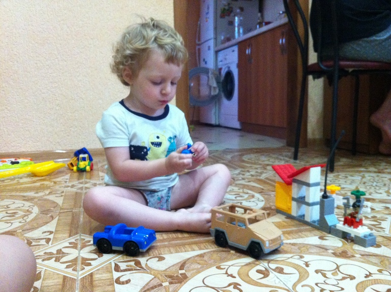 Игры. Любит машинки, конструктор в основном он высыпает, строит башню и собирает обратно. Боулинг понравился, мухлюет правда) Мультики сейчас самые любимые это Щенячий патруль, домовенок Кузя, Фиксики, Пеппа и Олли грузовичек. На ютубе любит развивающие, повторяет названия животных, числа, цвета. Вместе рисуем, фломастеры сентропен смывающиеся мне понравились. Пазлы хорошо собирает. Учимся ловить мячик, кидает и пинает хорошо. Часто использует левую руку, но всё же однозначно правша. Цвета знает почти все, начали учить оттенки - бирюзовый, серый, коричневый, розовый, бардовый. Формы хорошо узнает круг, квадрат, овал и ромб, треугольник пока не может произнести. Я специально ничему не учу, все в процессе игры. Много читаю по детской психологии.