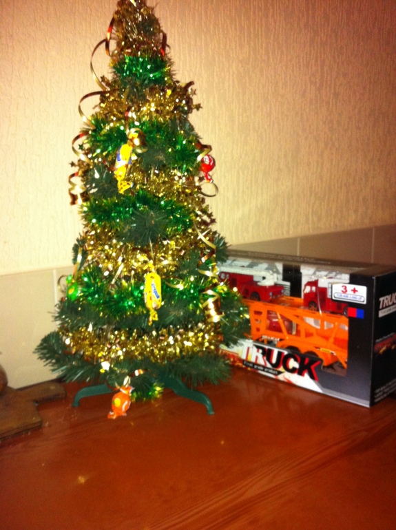 дед мороз подарил автовоз с машинками, боулинг и книгу о полезных машинах)