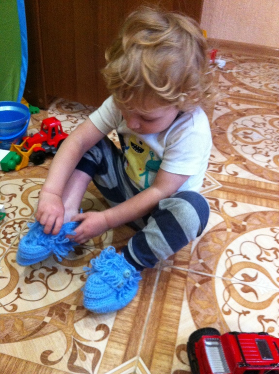 мамина подруга связала пинетки на рождение Остапа))) до сих пор велеки))))))))))