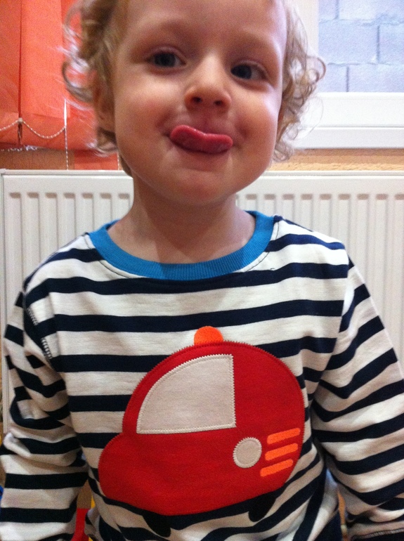 начал шутить/врать: спрашиваю - что нам дает корова? (он знает, что молоко) говорит чай! я говорю нет, он смеется и говорит лопата! я говорю нет, он - пожарная машина! и только потом сказал что молоко)))) я говорю вот шарф, он - "тетя Миля сязала"(тетя Мила мол его связала) тут же "ой неть, тетя Катя сязала" и ржот