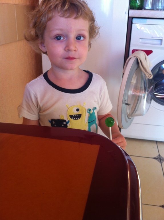 покупали мед сегодня и Остап вспомнил, что тетя в прошлый раз угощала его медом на палочке))) попросил у нее)) хитрюга