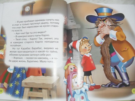Или можно даже большие книги, но тоже с крупным шрифтом. Типа вот такого Буратино.