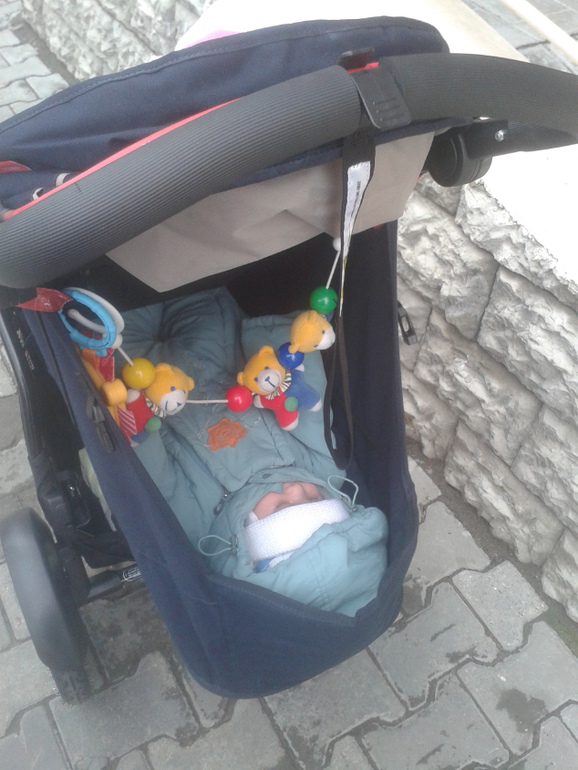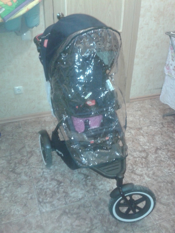 прогресс на лицо! такая странная коляска! скажи, я как масенького от дожня укрыть, когда оня сидит, козырек то один?