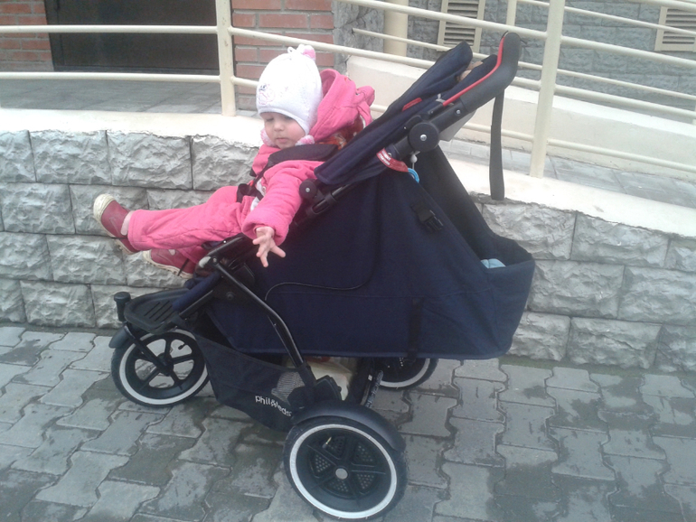 решила сравнить с нашей прогулкой геоби хеппи дино. на фото видно, как я катала сына, у фила ниже спальное место, просто у прогулки градусов 170, а фил на 180 раскладывается. можно сказать, был бы тот же уровень. о, эти большие колеса!!!!!)))