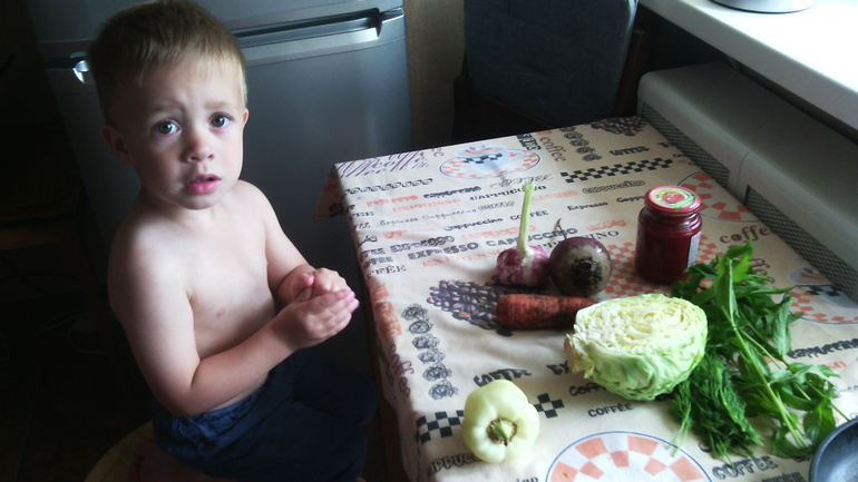 А теперь ставим на стол сметану, режем черный хлеб и зовем всех к столу.
