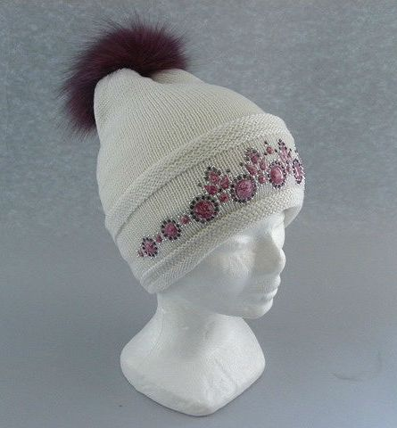 Шапка, цвет белый и бело-фиолетовый, арт. 18088, состав: 50% шерсть, 50%-акрил, р-ры: 54-56, 56-58. Цена: 2300р