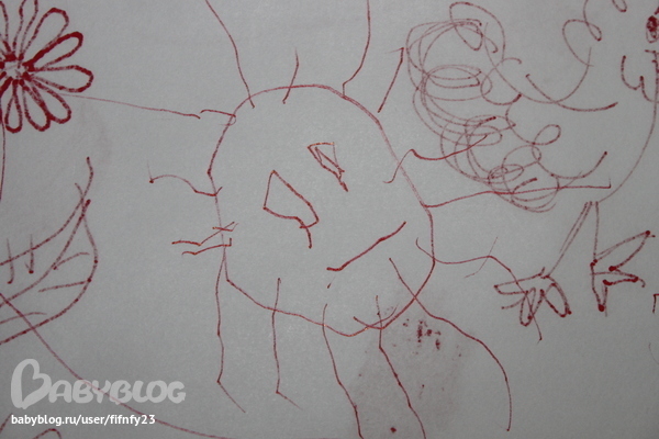 Вот о чем: неумеет обращаться с красками, пластелином, фломастерами. Не умеет в том смысле, что использует не по назначению, Вроде лепит-и непременно попробует на зуб. Красит на себе, Фломастерами- красит ногти))) И это мы вместе сидим, про то чтобы оставить ее за этим занятием и отвернуться и речи нет. И ведь успевает быстренько, следит за мной не отвернулась ли я)))) и скорее разрисовывается. Ну не интересно ей ,что ли, в альбоме