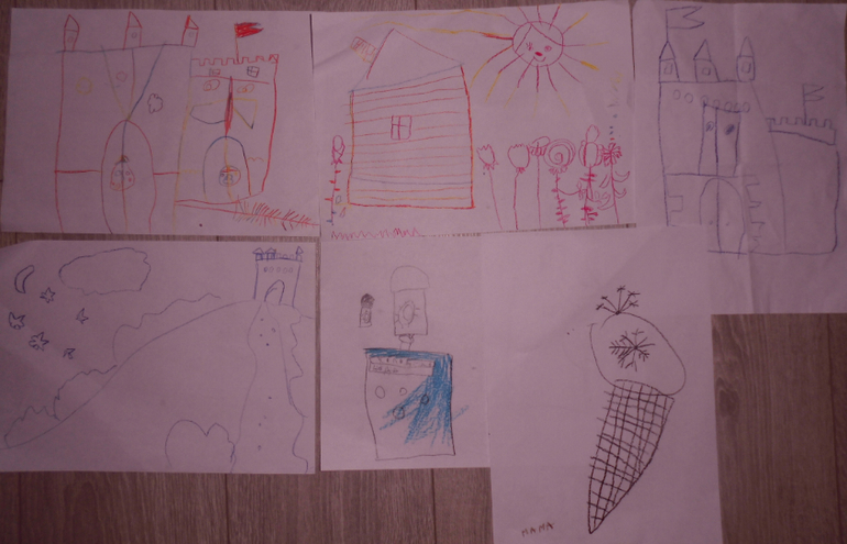 В последнее время появились рисунки-задания для мамы. Типа найди правильный дорожку в лабиринте, реши задачку.