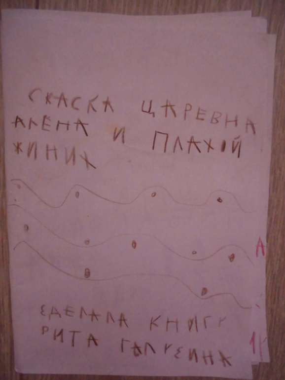 Очень любит свои рисунки подписывать, придумывает имена для принцесс. Пишет, конечно с кучей ошибок, как слышит. Ну и еще у нас половина цифр и половина букв смотрят не в ту сторону, постоянно ее поправляю, но каждый день как в первый раз. Не знаю с чем это связано, но надеюсь к школе перестанет их зеркалить.